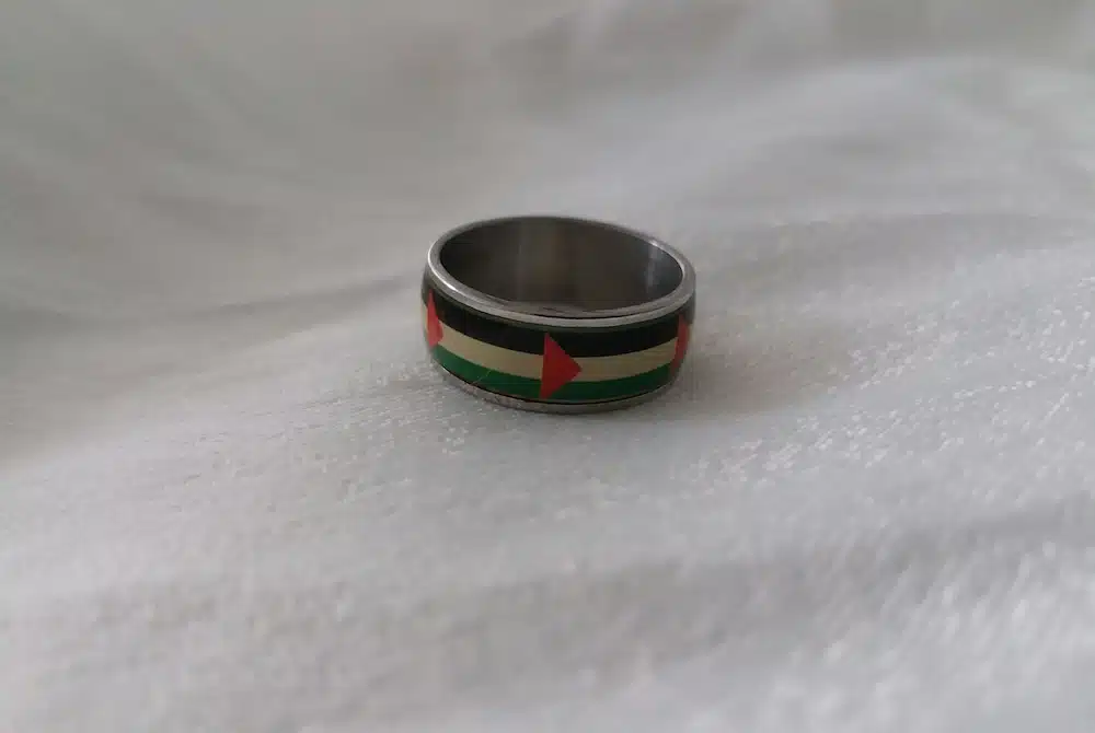 On my journey, I brought a ring decorated with the flag of Palestine made in the capital, Al Quds which is a gift from my uncle. It is very expensive on my heart. The ring reminds me of my family and my beloved homeland. It always encourages me to overcome the difficulties. It makes me always think of my beloved people who suffer daily murder, displacement and war.