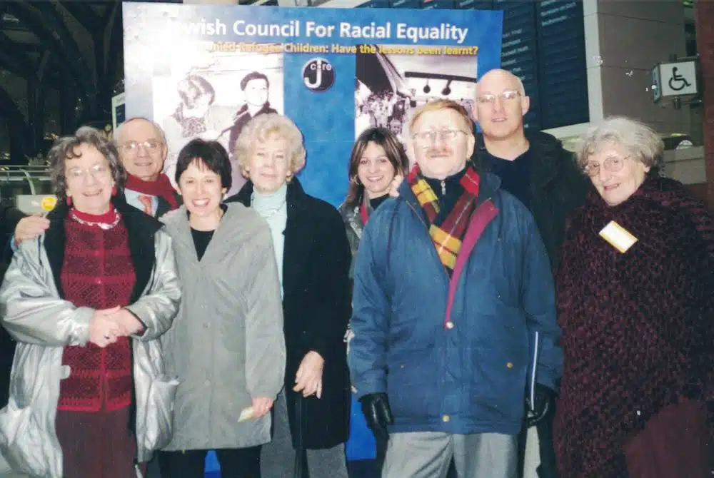 Edie Friedman (3rd from left) and June Jacobs (4th from left) at Liverpool Street in 2001 campaigning about unaccompanied refugee children.