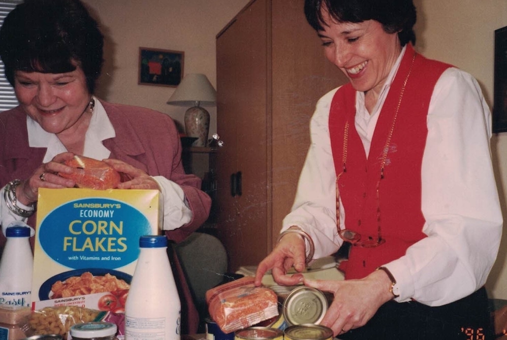 Edie Friedman and Helen Bamber packing food for refugees in 1996.
