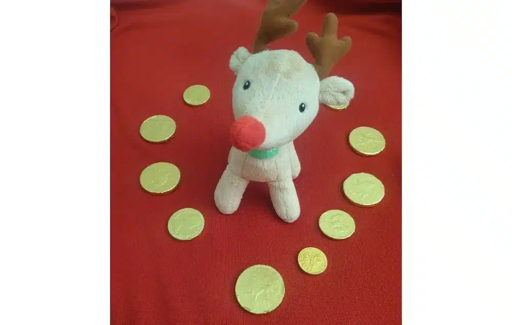 In the bag there was this beautiful reindeer, a small box of Christmas candy cane, a small bag of chocolate coins (in the photo), and a beautiful candle. Yes, although it was not a very expensive Christmas present, but it was PERFECT as it gave me hope, and taught me a lesson of giving.