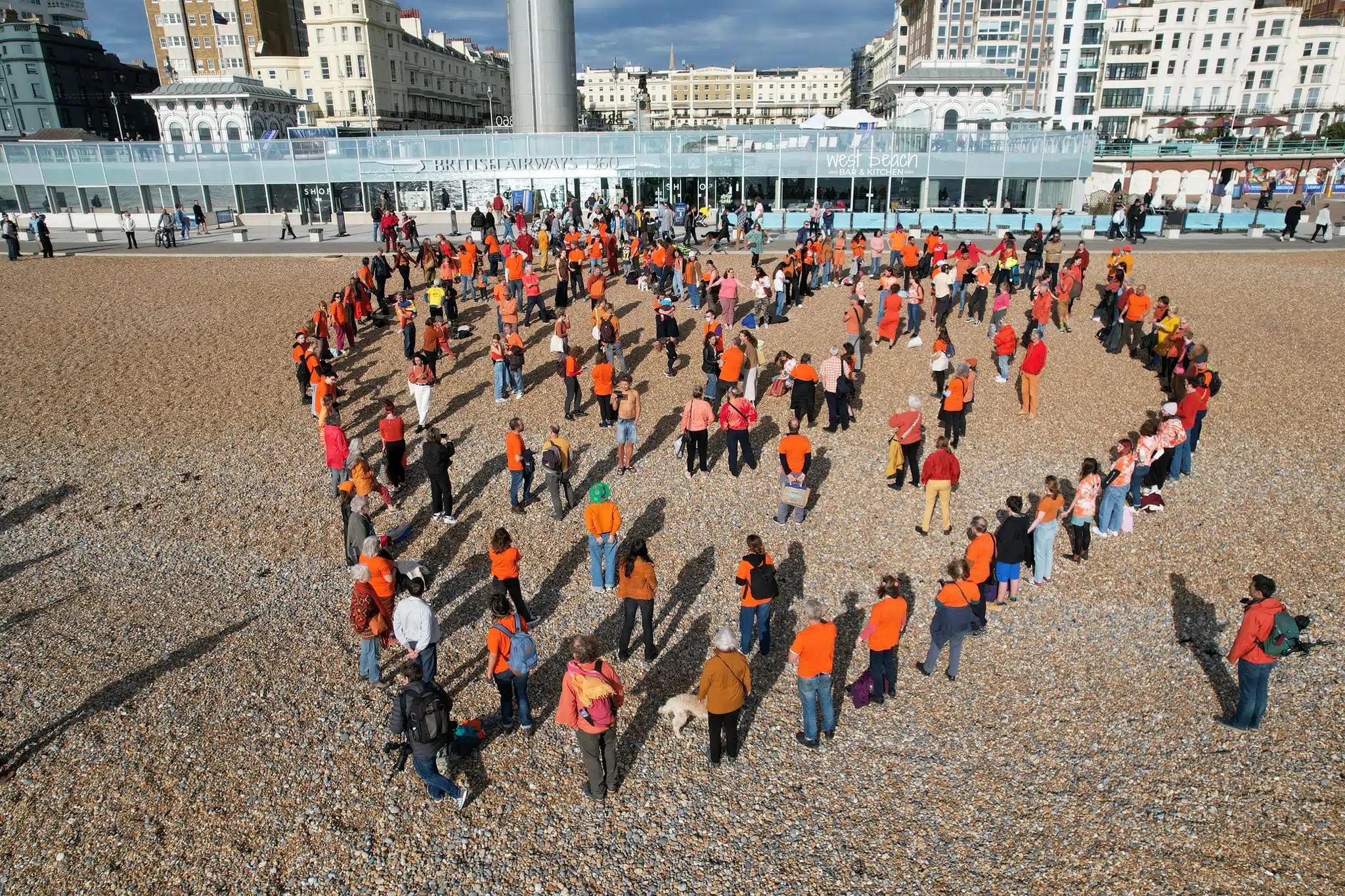 Hundreds of people sporting orange, in Brighton, formed a giant orange heart on the city’s famous pebbled beach. It was organised by Sanctuary on the Sea, Sussex Student Action for Refugees and Refugee Support Europe.