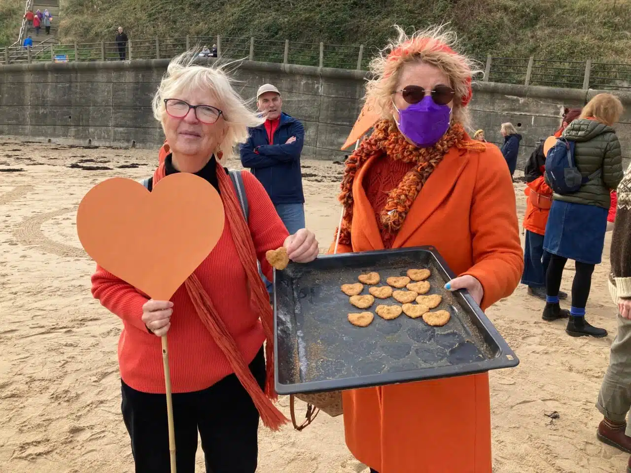 Meanwhile, our friends at Refugee Action, Curious Monkey, WERS West End Refugee Service, in the North East of England, formed a giant heart on King Edward’s Bay in Tyneside. They etched ‘Together With Refugees’ in giant lettering on the sand. There were also plenty of other festivities at the event, including heart-shaped cookies and orange cardboard cutouts being waved around!